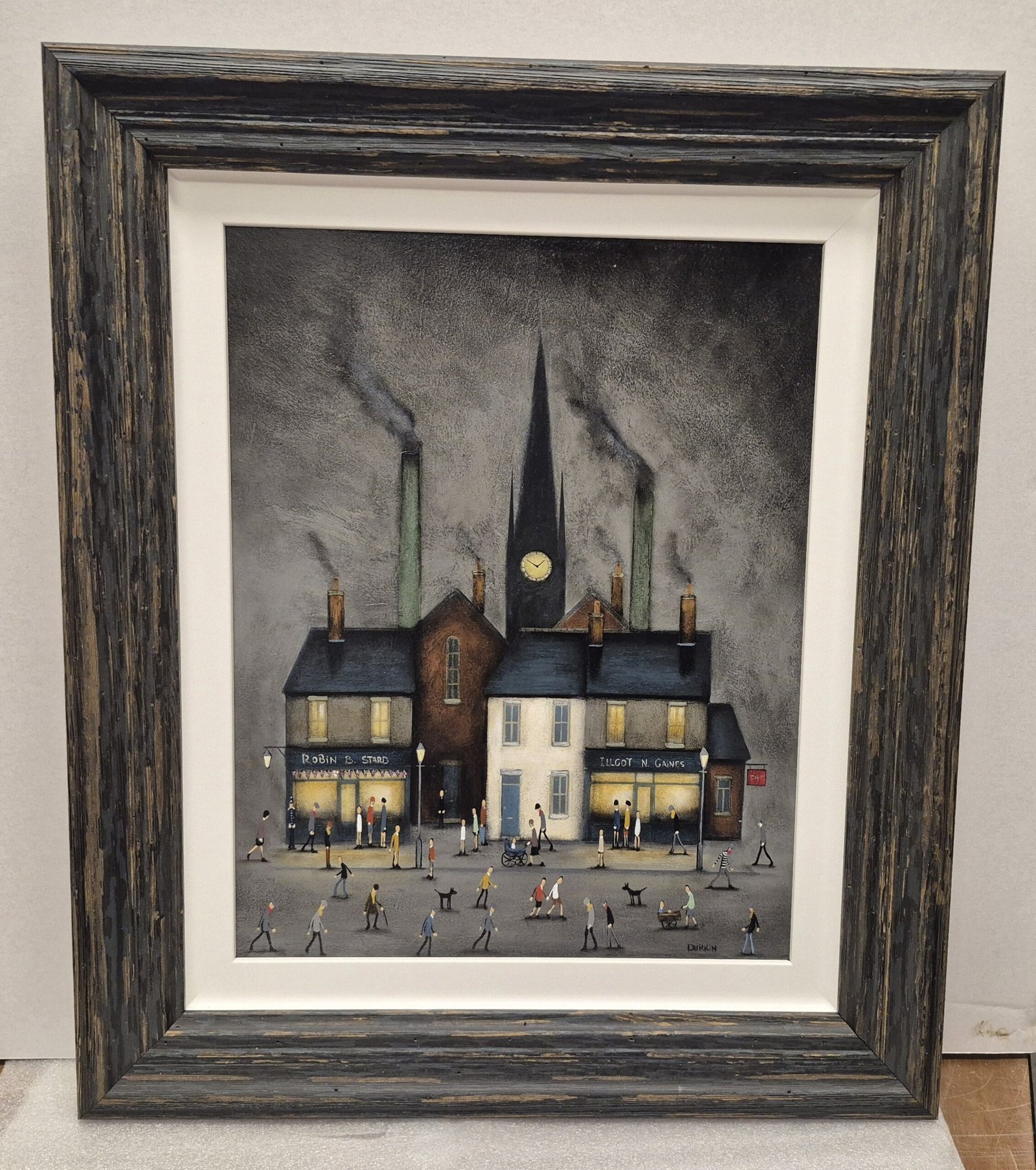 Sean Durkin paints in the style of LS Lowry following his Dad’s theft of an actual Lowry from a Middlesborough art gallery in the 70s.