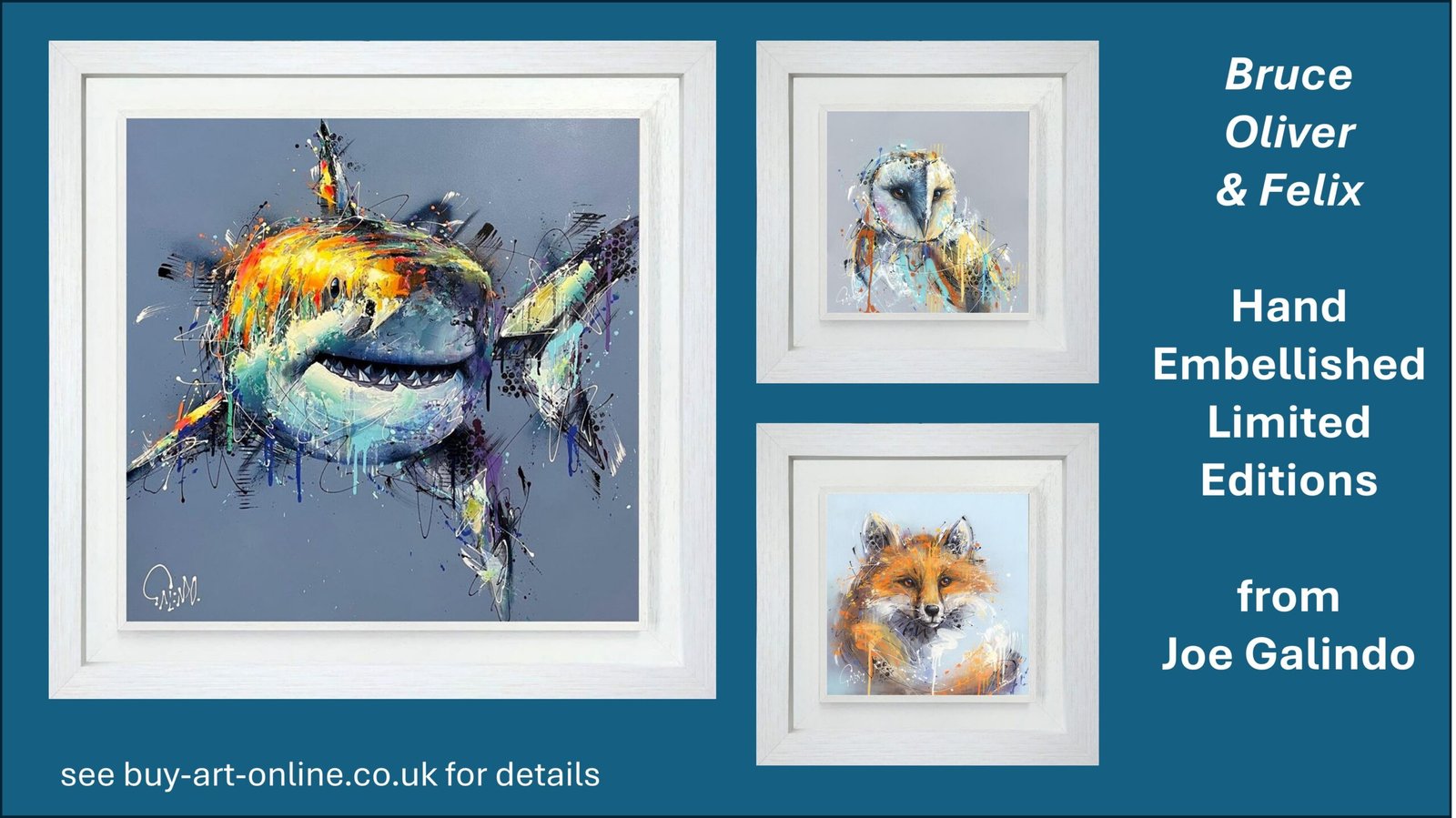 The key to Galindo’s unique style is the inventive ways to apply paint to the canvas. By using different techniques and mediums on top of one another, depth and contrast is created. Powerful contemporary colours are abstractly incorporated with details of wild animals in a loose, energetic style, which combine for an unusual but satisfying end product that demands attention and allows each person to interpret them individually. He attempts to express his own emotion and sentiment in the face of the animals to build a connection with the viewer. Unorthodox tools are used to apply paint including spoons, nails and bits of rubber. Moreover, each single piece of art is irreplicable due to the random nature of propelling paint with a flick of the wrist or a swoosh of the arm.